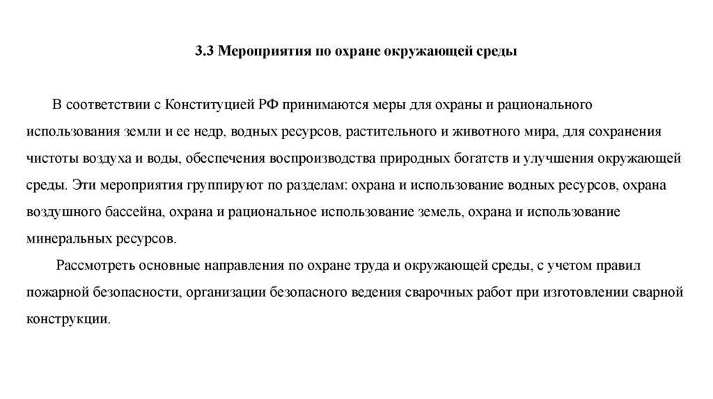 3.3 Мероприятия по охране окружающей средыВ соответствии с Конституцией РФ принимаются меры для охраны и рационального