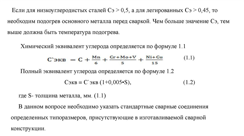влияет и толщина свариваемых кромок. С учетом этого фактора эквивалент углерода