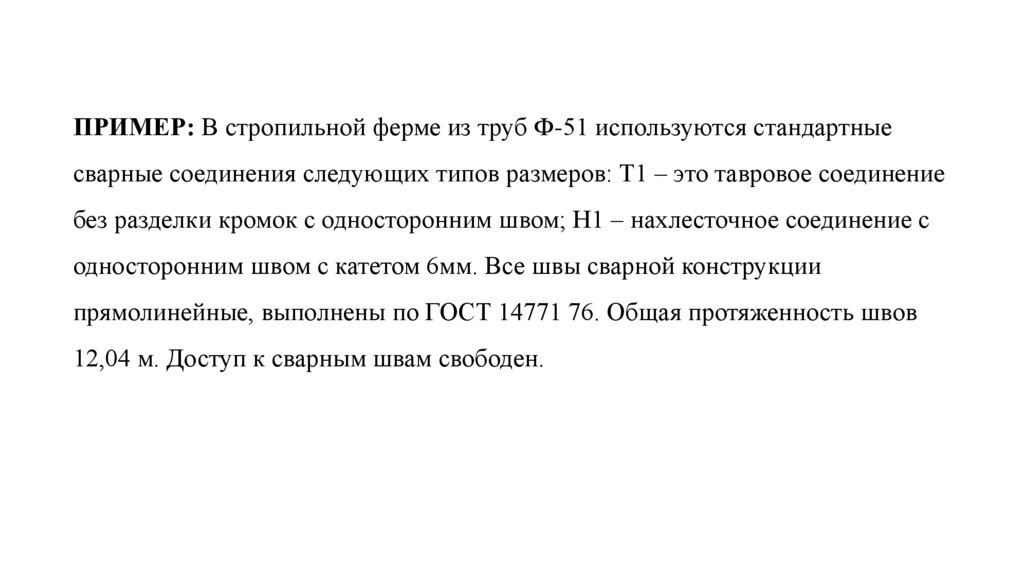 ПРИМЕР: В стропильной ферме из труб Ф-51 используются стандартныесварные соединения следующих типов размеров: Т1 – это тавровое соединение