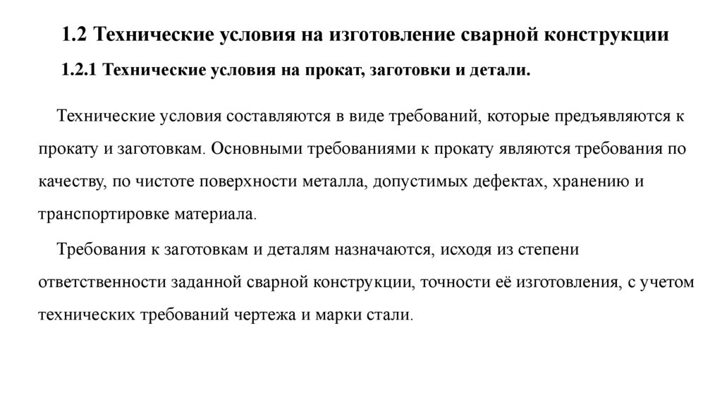 1.2 Технические условия на изготовление сварной конструкции1.2.1 Технические условия на прокат, заготовки и детали.