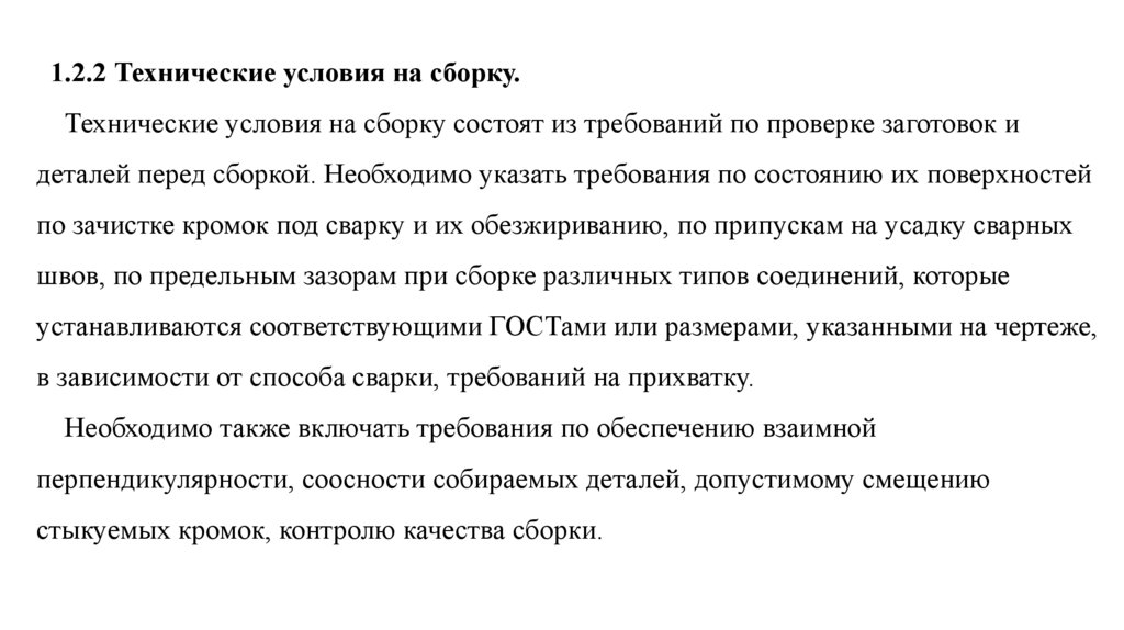 1.2.2 Технические условия на сборку.Технические условия на сборку состоят из требований по проверке заготовок и