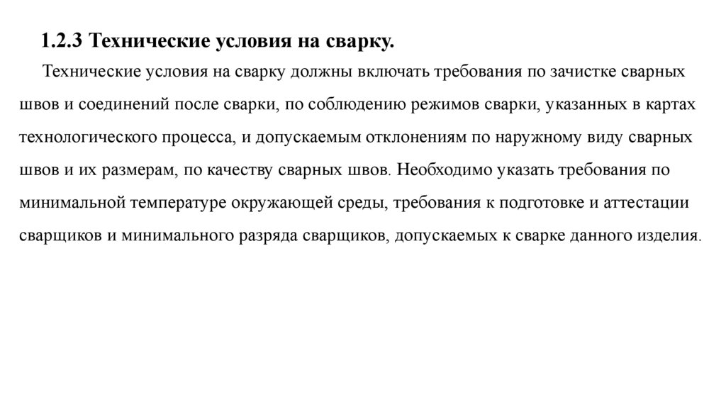 1.2.3 Технические условия на сварку.Технические условия на сварку должны включать требования по зачистке сварных