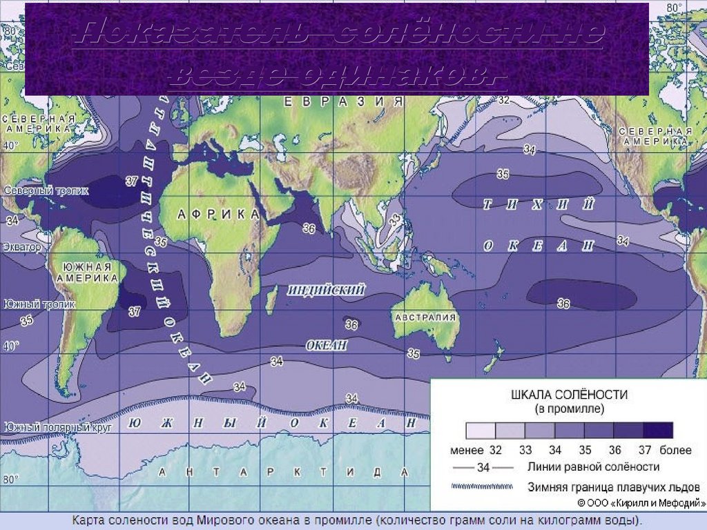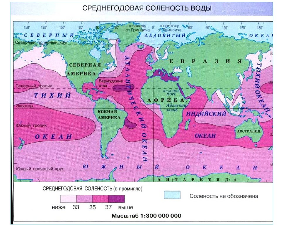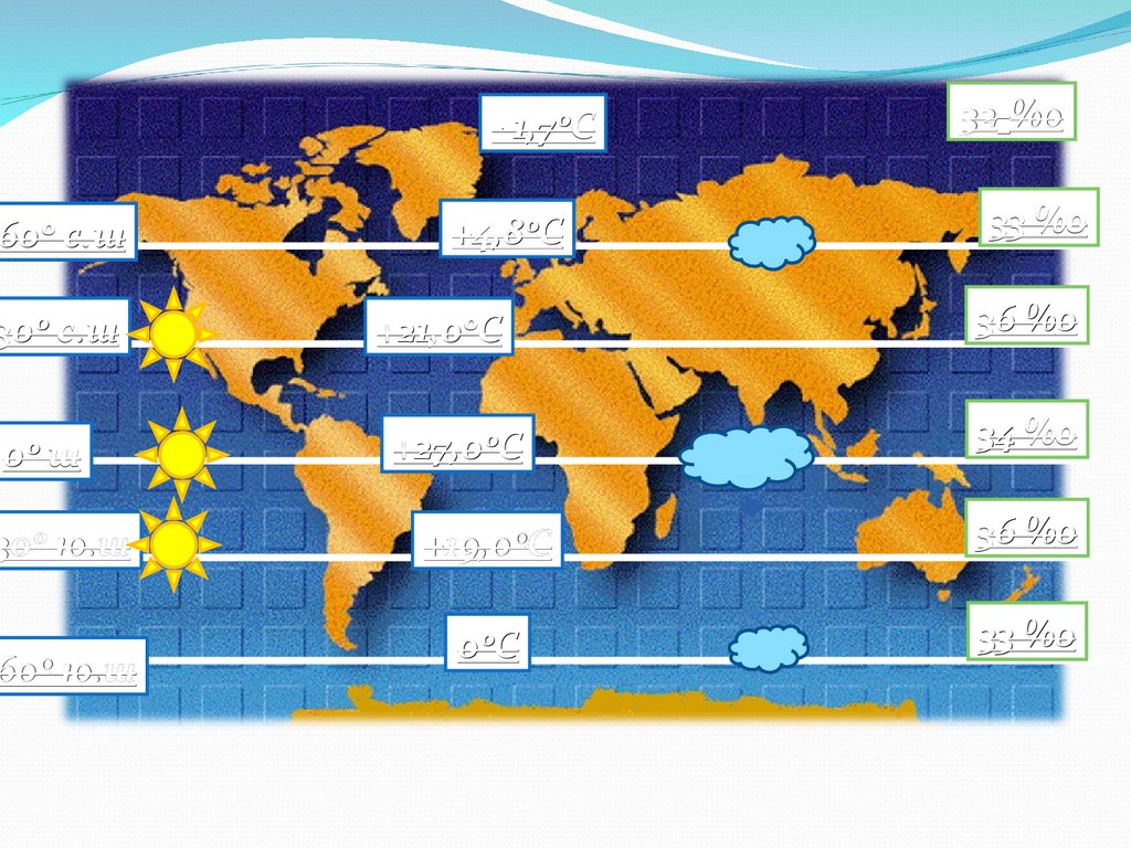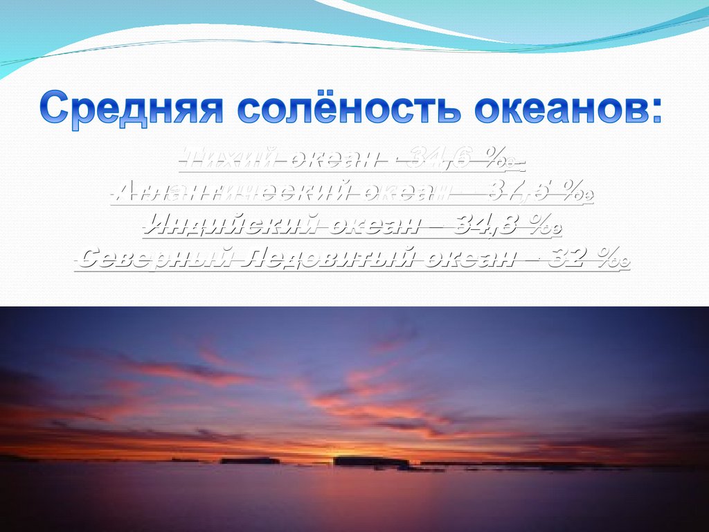 Тихий океан - 34,6 %оАтлантический океан – 37,5 %о