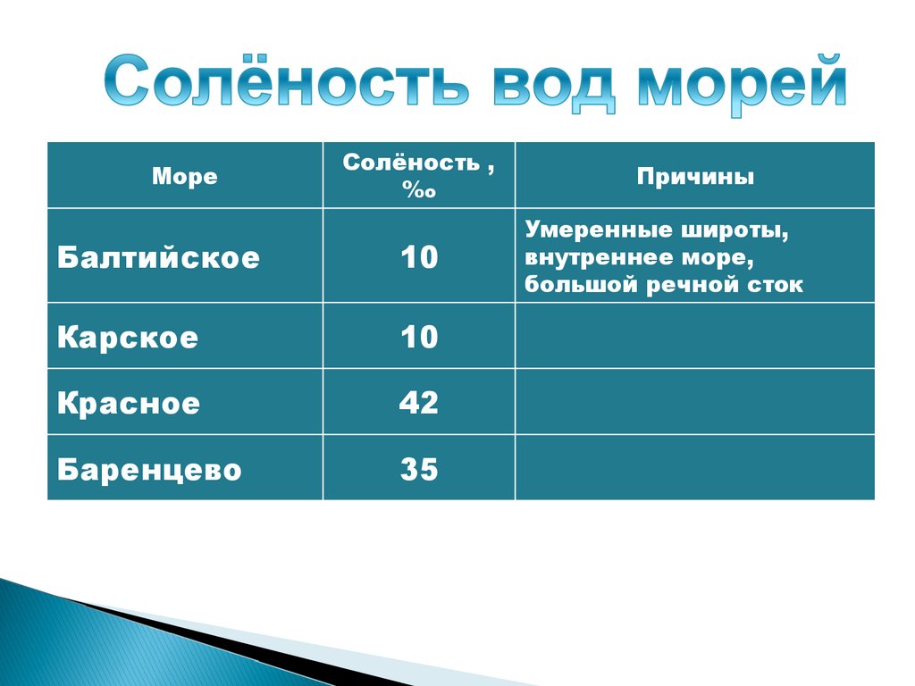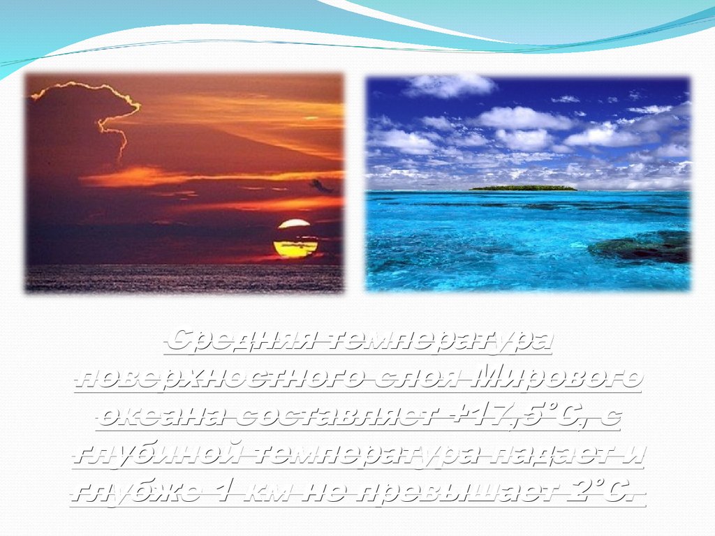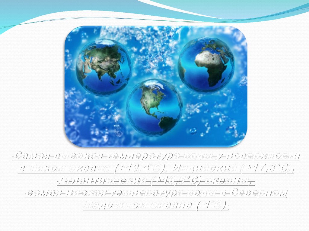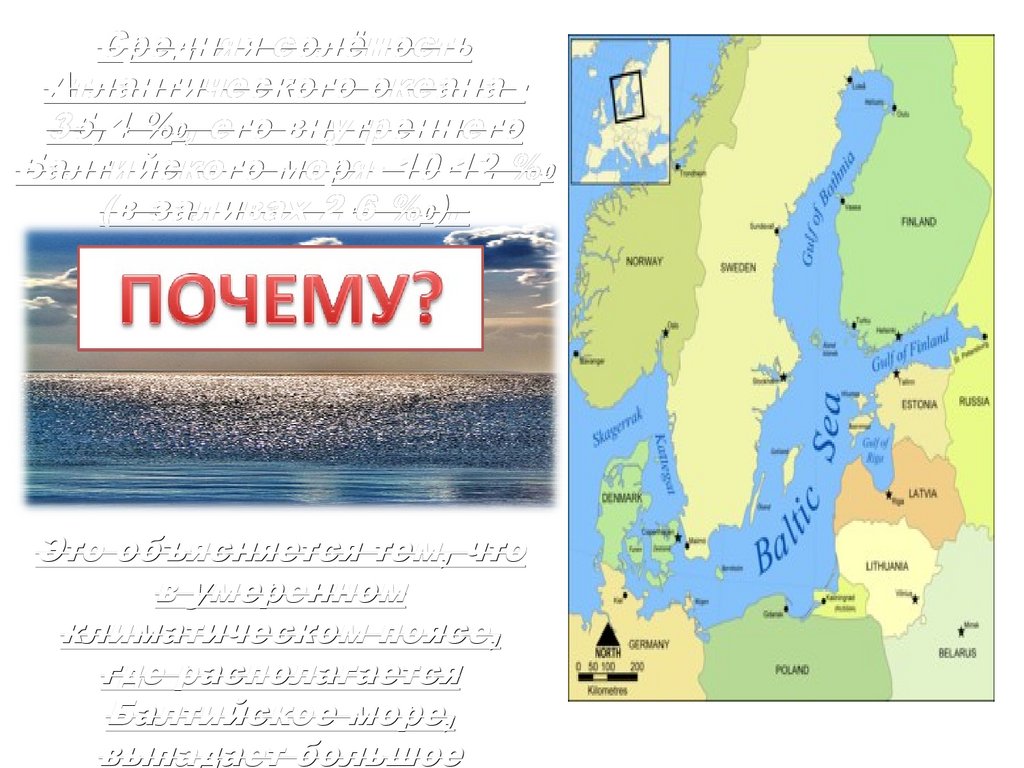 Тихий океан - 34,6 %оАтлантический океан – 37,5 %о