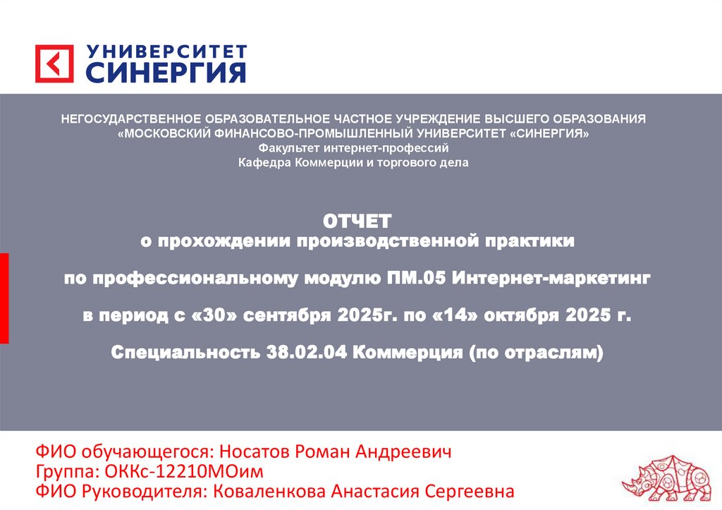1. ОТЧЕТ о прохождении производственной практики по профессиональному модулю ПМ.05 Интернет-маркетинг в период с «30» сентября