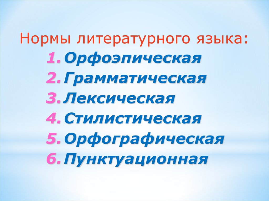 Нормы литературного языка:1. Орфоэпическая