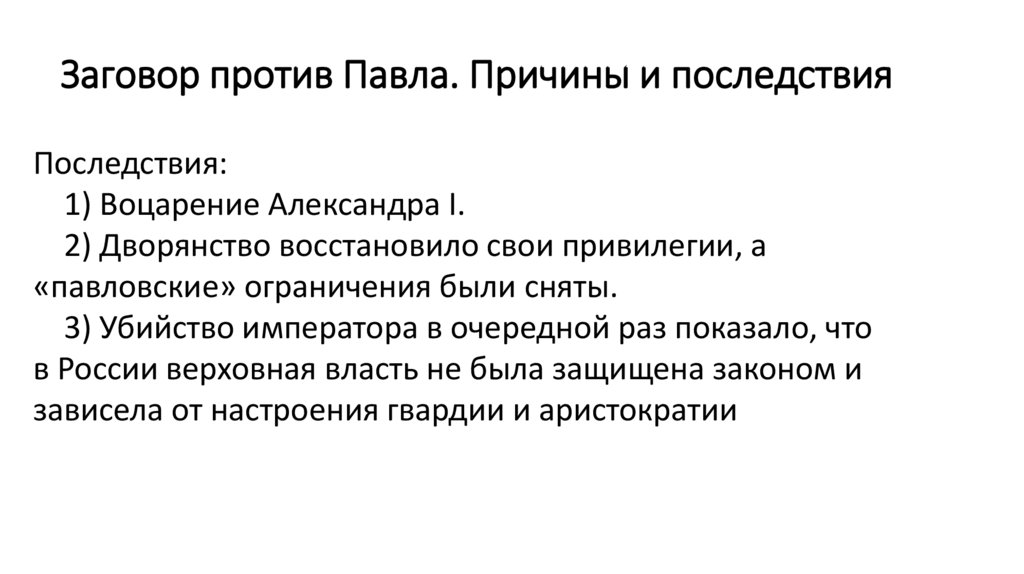 Заговор против Павла. Причины и последствияОу...