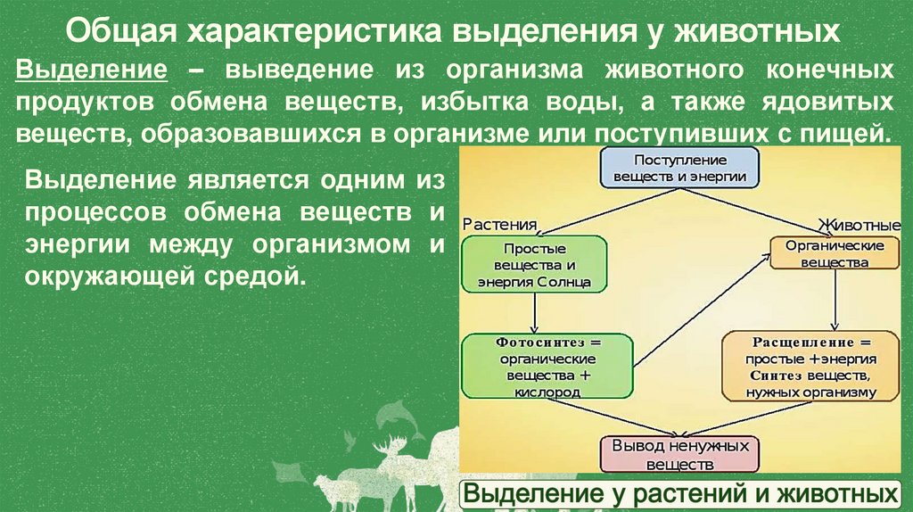 Общая характеристика выделения у животныхВыделение – выведение из организма животного конечных