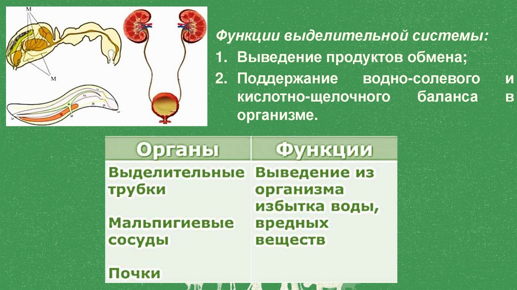 Функции выделительной системы:1. Выведение продуктов обмена;
