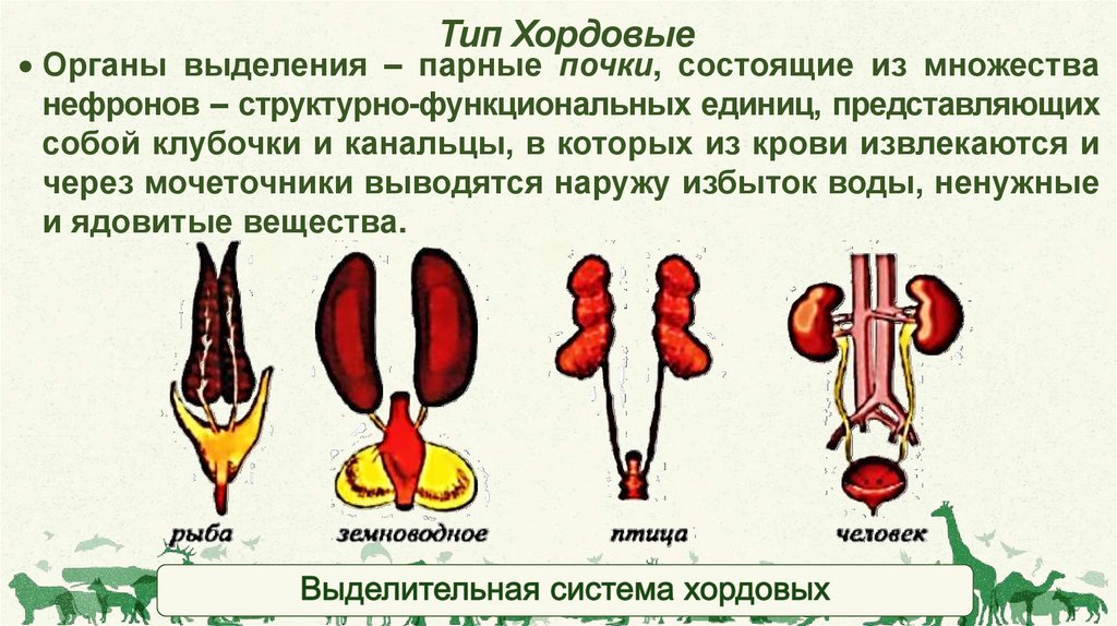 Тип ХордовыеОрганы выделения – парные почки, состоящие из множества