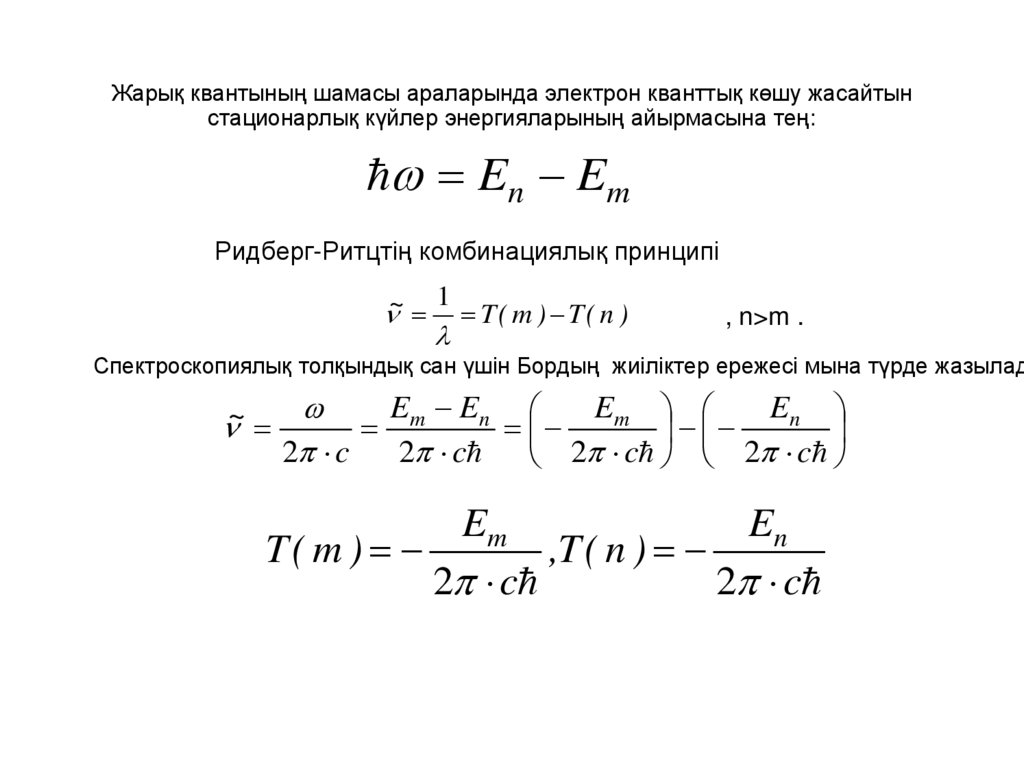 • Сутегі атомы мен сутегі тәрізді иондардың жиіліктері үшінформулалар мына түрге келеді
