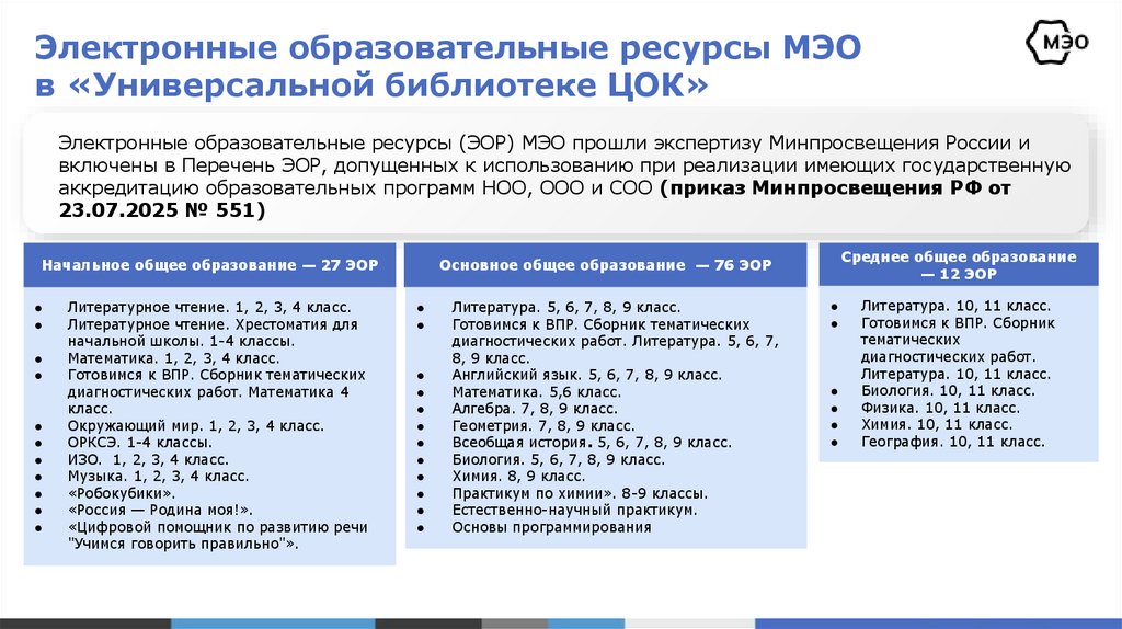 Электронные образовательные ресурсы МЭОв «Универсальной библиотеке ЦОК»
