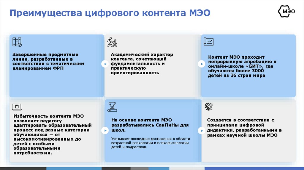 Преимущества цифрового контента МЭОЗавершенные предметные