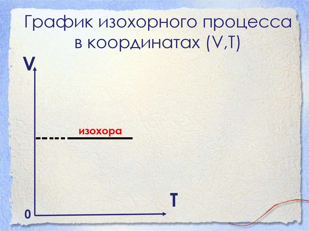 График изохорного процессав координатах (V,Т)