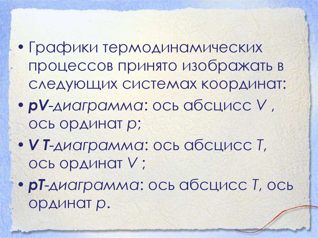 • Графики термодинамическихпроцессов принято изображать в