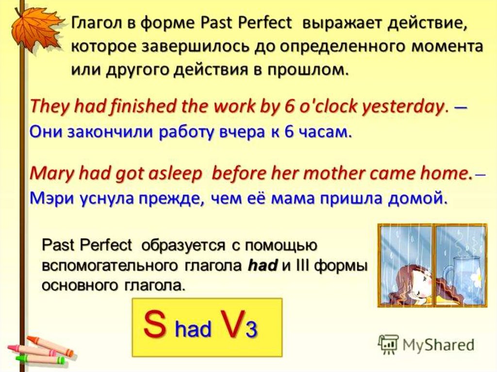 Характерные для этого времени слова и словосочетания:by 5 o’clock - к 5 часам