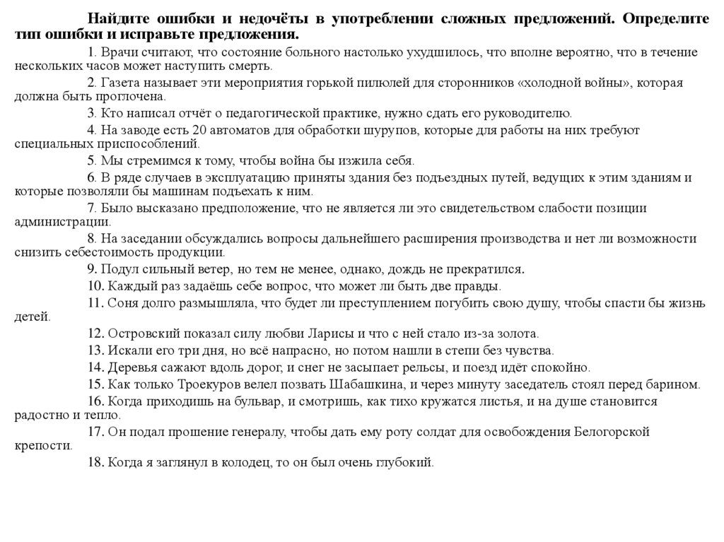 Найдите ошибки и недочёты в употреблении сложных предложений. Определитетип ошибки и исправьте предложения.
