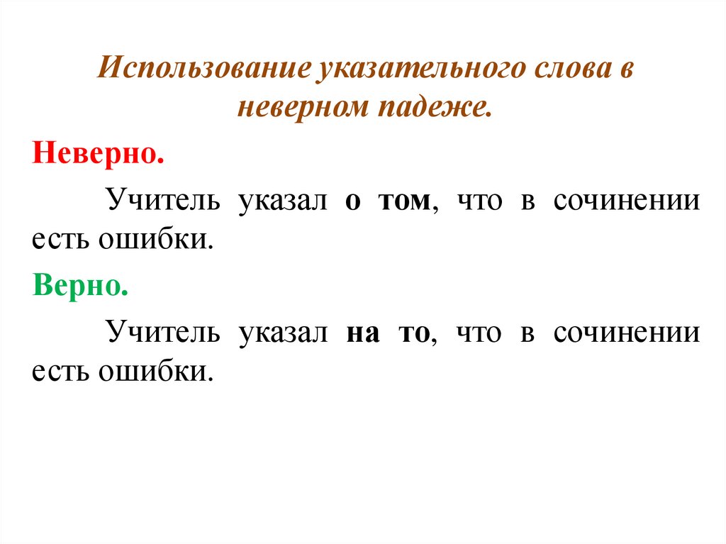6. Ошибки, связанные с употреблением указательных слов в главном предложении.