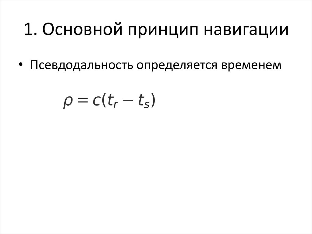 1. Основной принцип навигации• Псевдодальность определяется временем