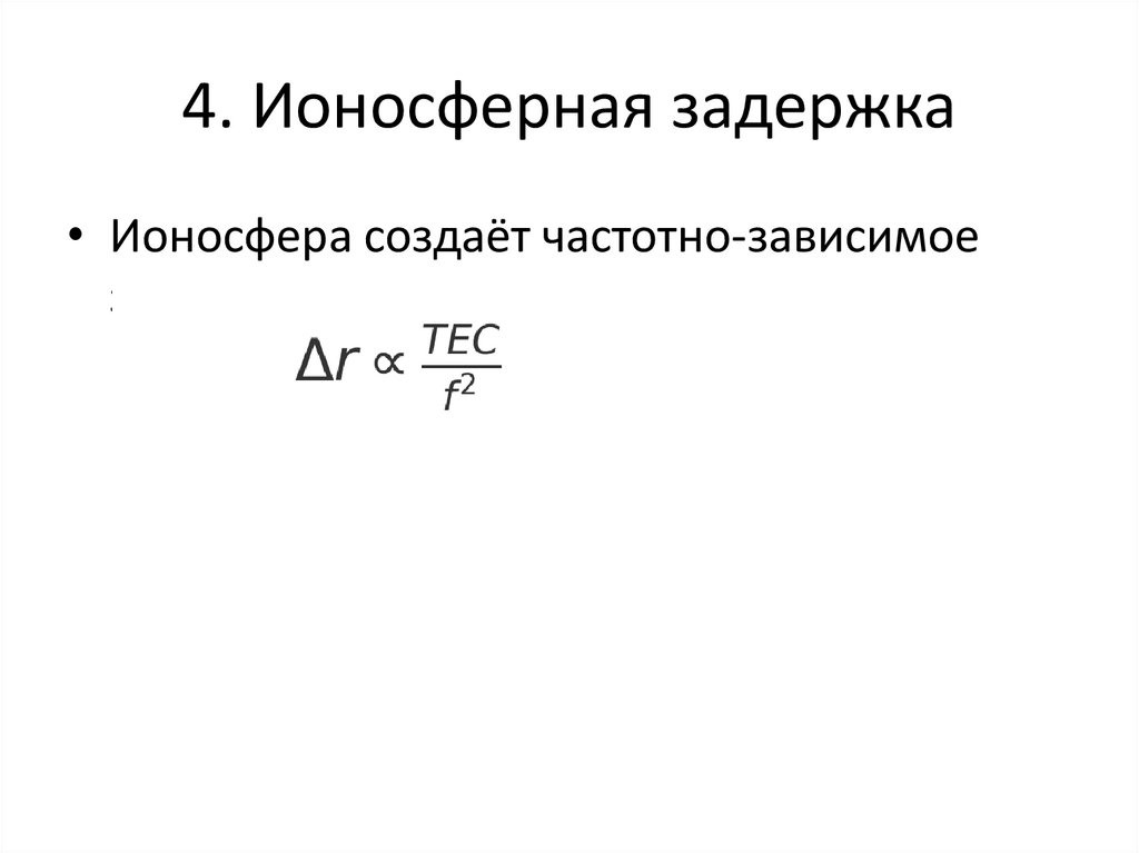 4. Ионосферная задержка• Ионосфера создаёт частотно-зависимое