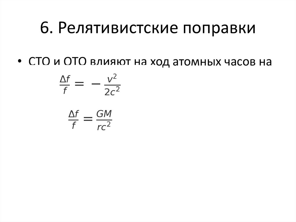 6. Релятивистские поправки• СТО и ОТО влияют на ход атомных часов на
