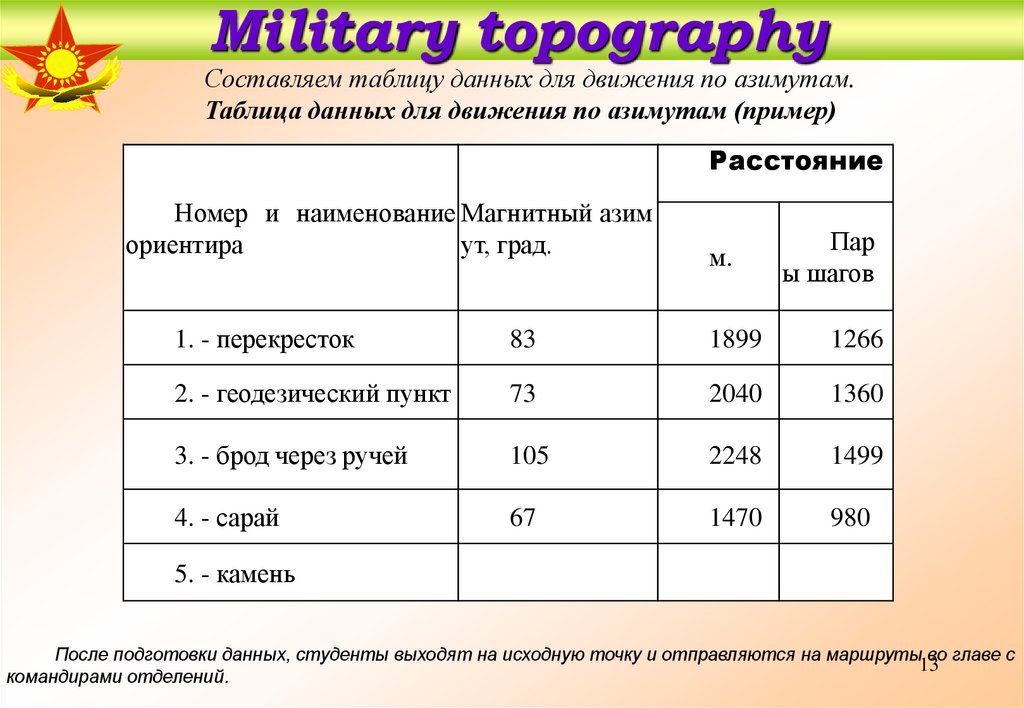 Military topographyСоставляем таблицу данных для движения по азимутам.