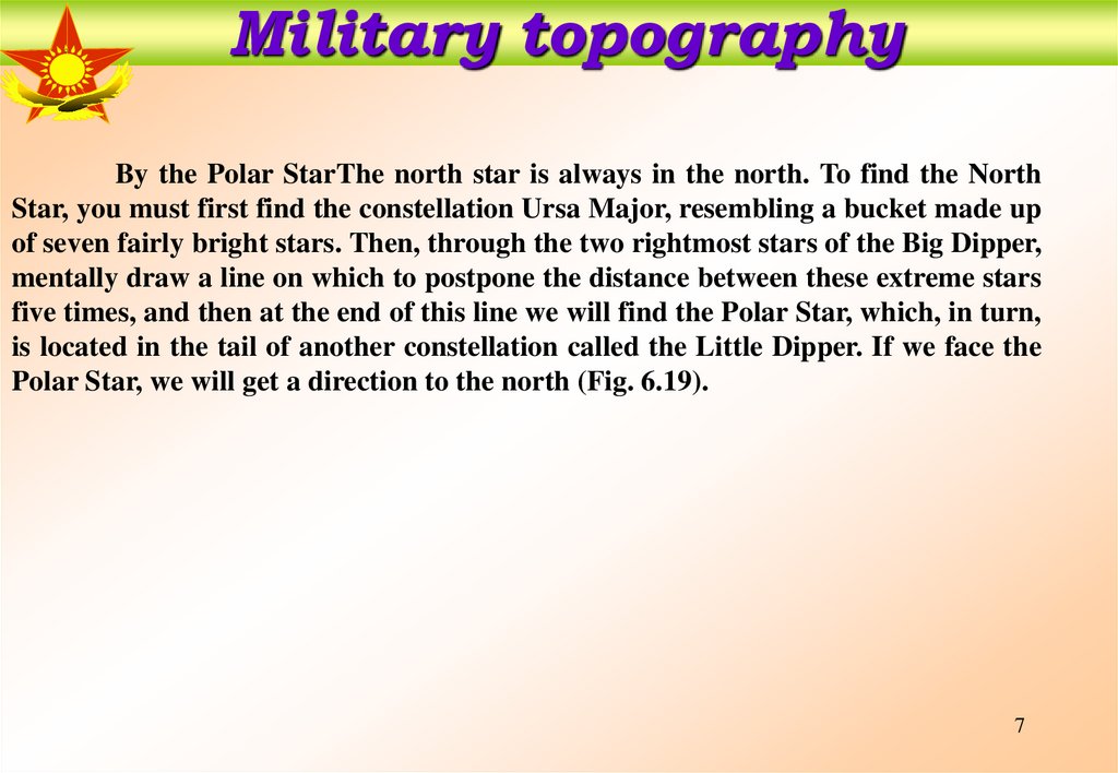 Military topographyBy the Polar StarThe north star is always in the north. To find the North