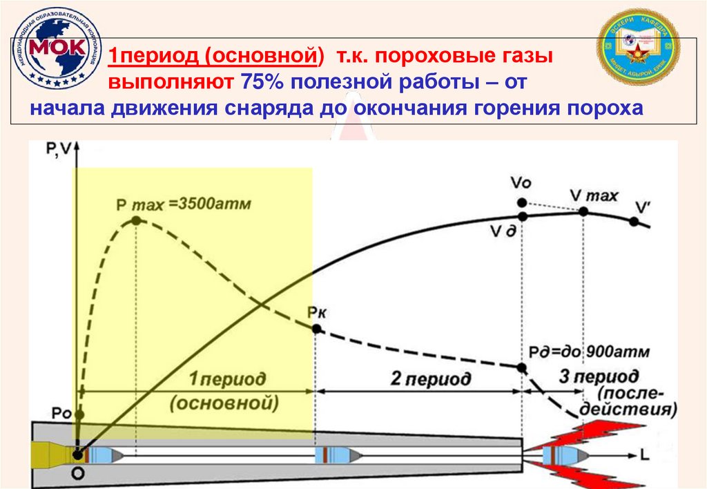1период (основной) т.к. пороховые газывыполняют 75% полезной работы – от