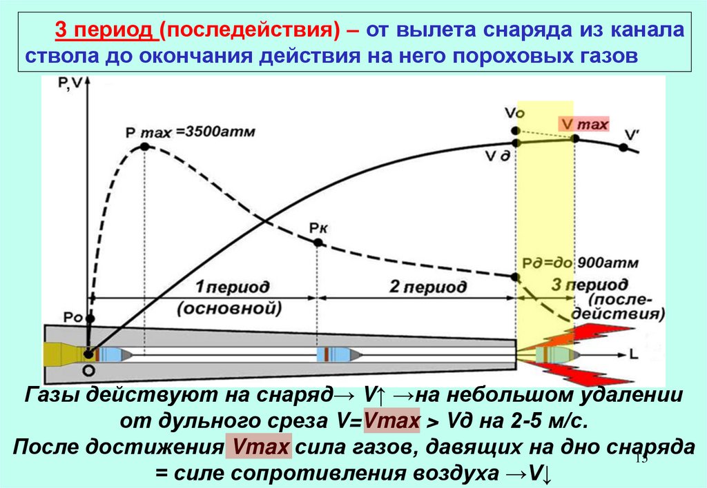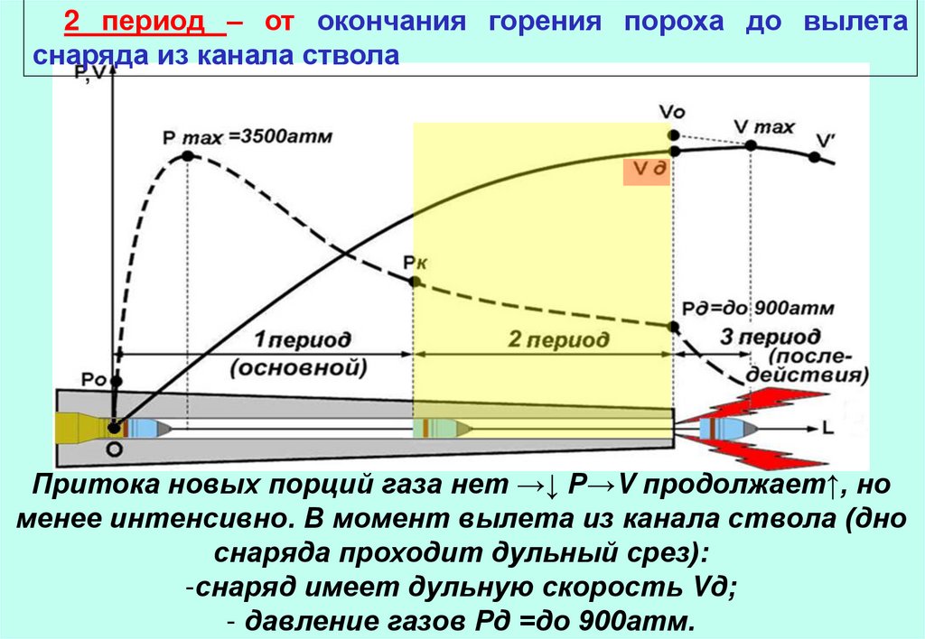 газа→↓ Р→V↑, но менее интенсивно. Когда снаряд пройдет