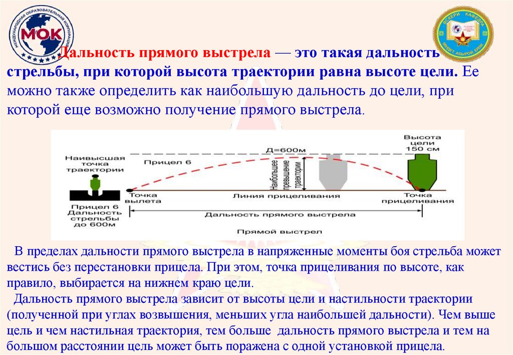 цель), от настильности траектории (она будет тем больше, чем настильная траектория) и от угла