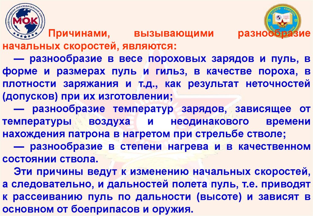Причинами, вызывающими разнообразие угловбросания и направления стрельбы, являются: