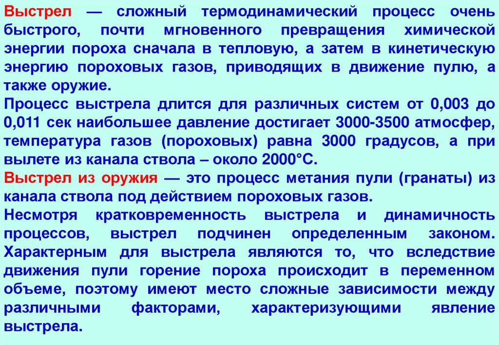 Выстрел — сложный термодинамический процесс оченьбыстрого, почти мгновенного превращения химической