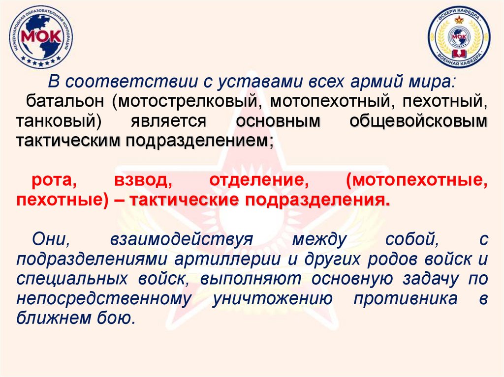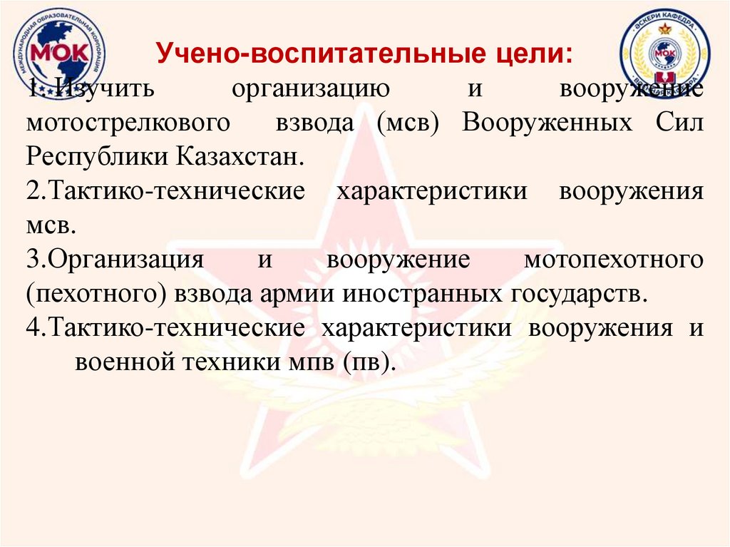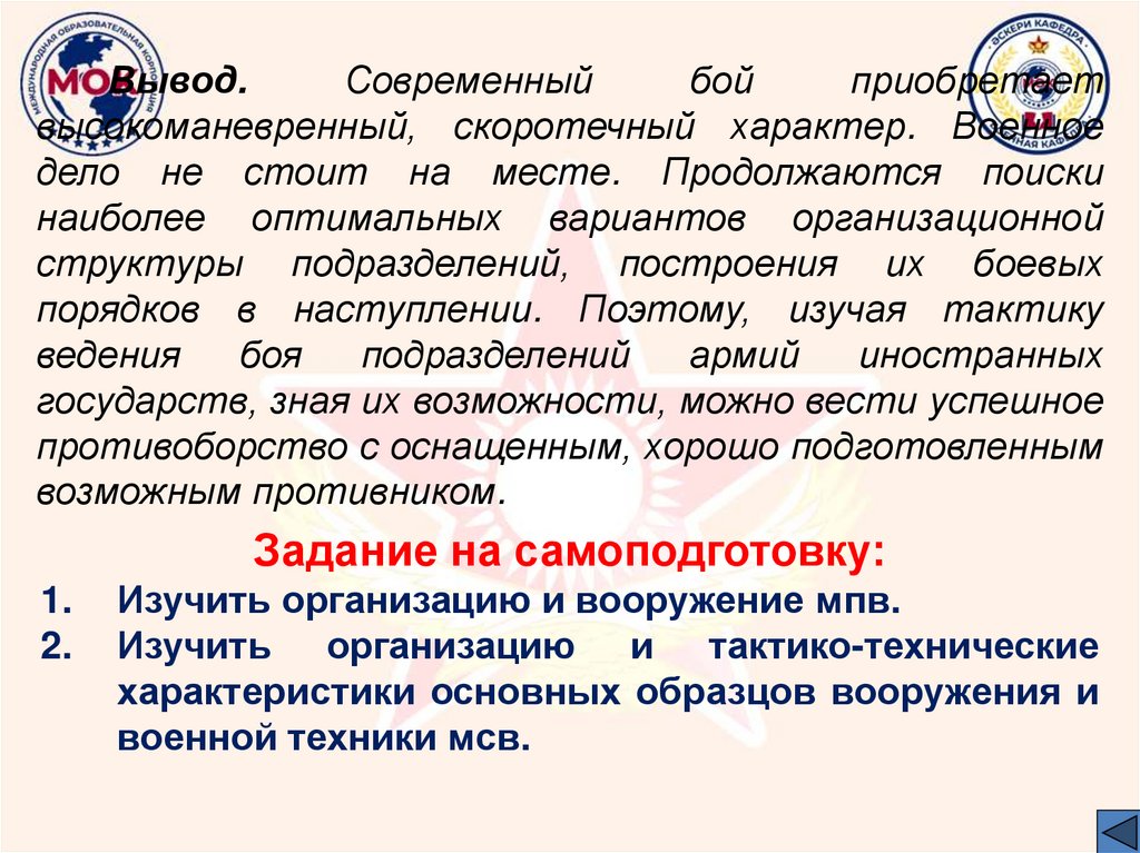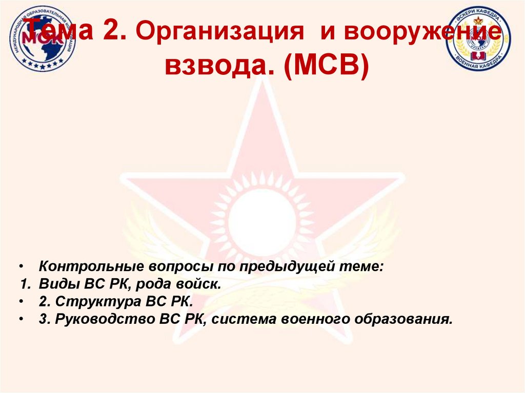 Тема 2. Организация и вооружениевзвода. (МСВ)