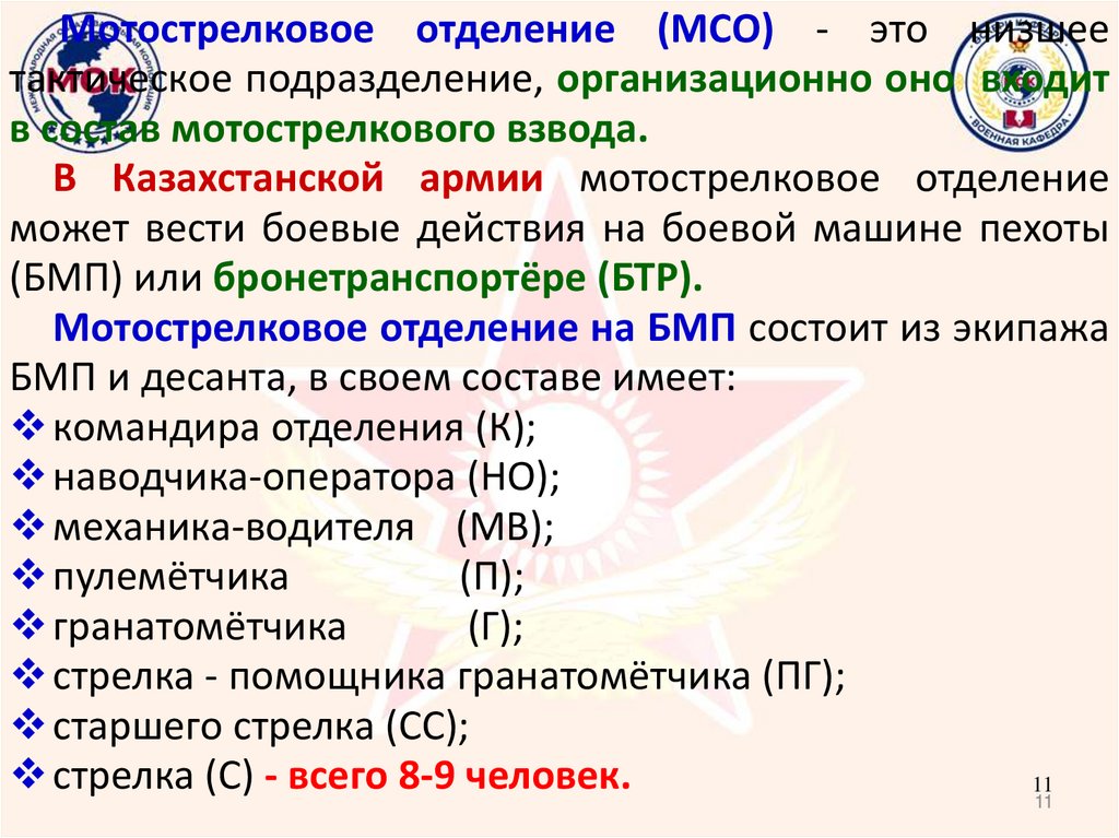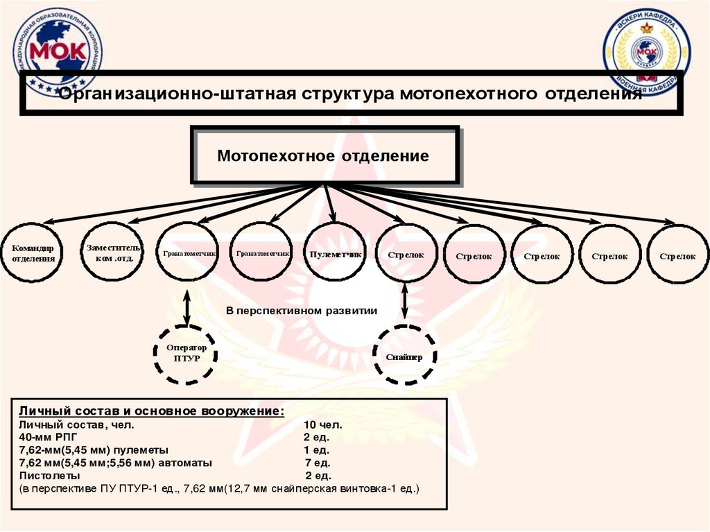 Мотострелковое отделение (МСО) - это низшеетактическое подразделение, организационно оно входит