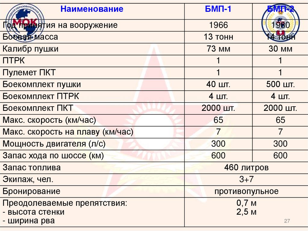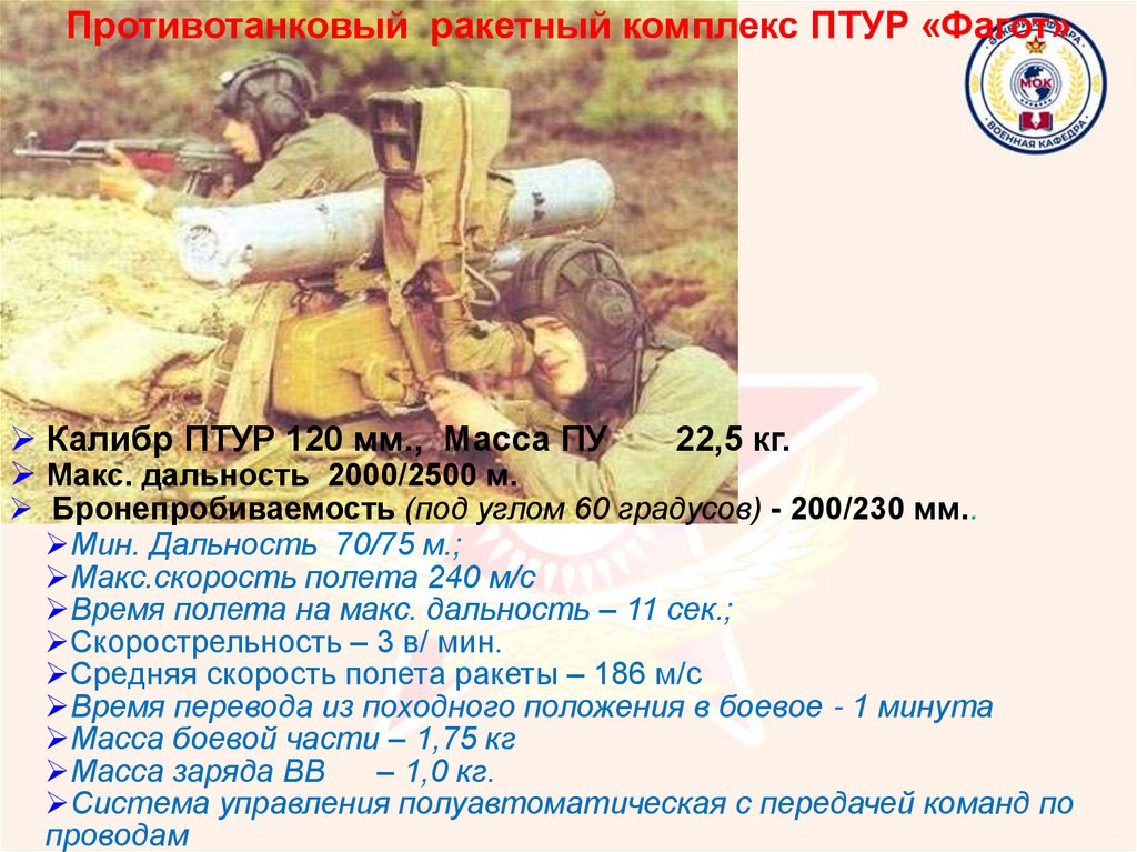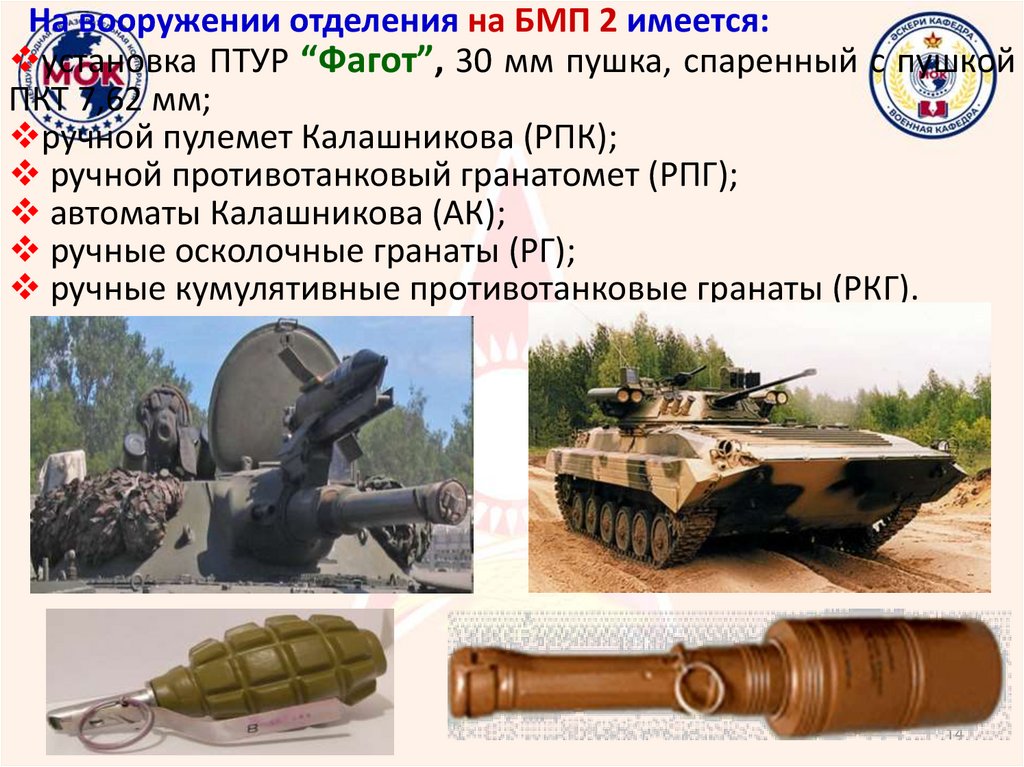 - БМП – 3 ед., ПТУР «Фагот» -3.
