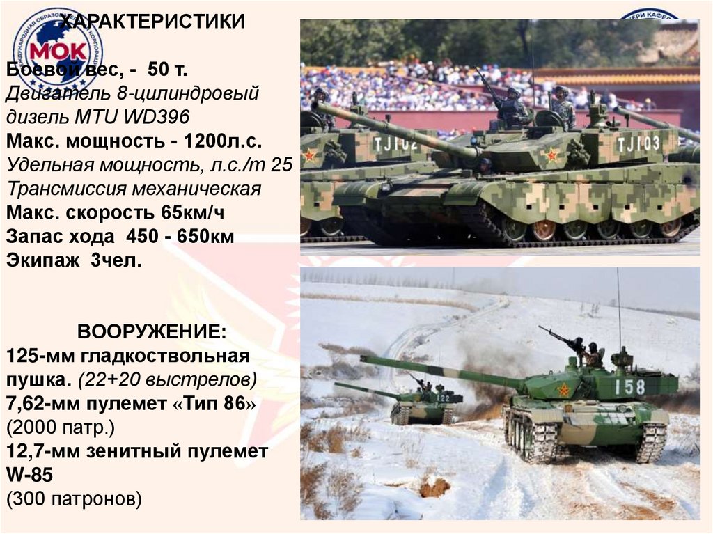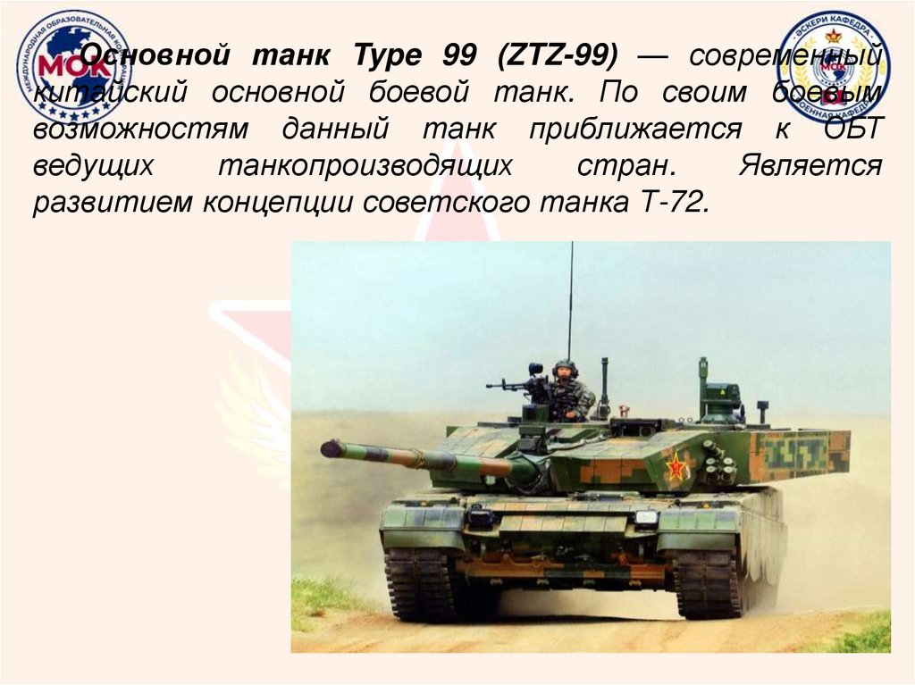 Основной танк Type 99 (ZTZ-99) — современныйкитайский основной боевой танк. По своим боевым