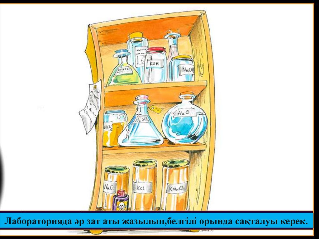 Лабораторияда әр зат аты жазылып,белгілі орында сақталуы керек.13.