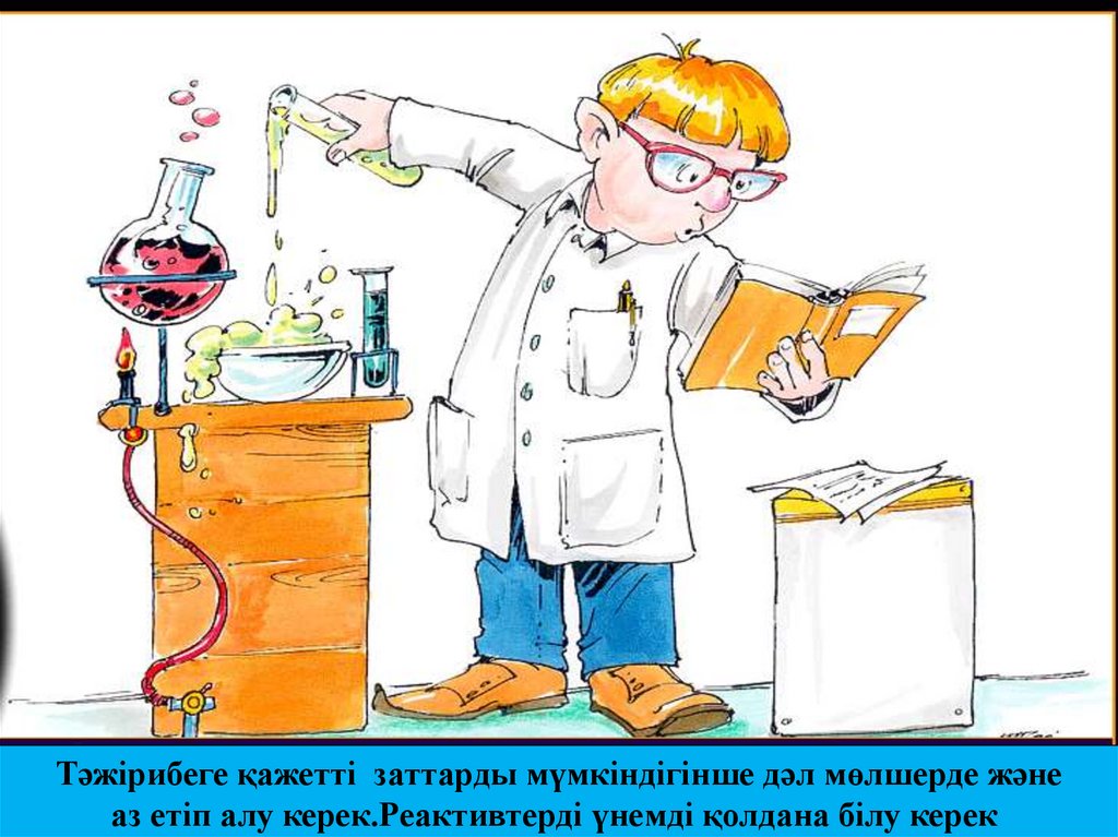 Тәжірибеге қажетті заттарды мүмкіндігінше дәл мөлшерде жәнеаз етіп алу керек.Реактивтерді үнемді қолдана білу керек