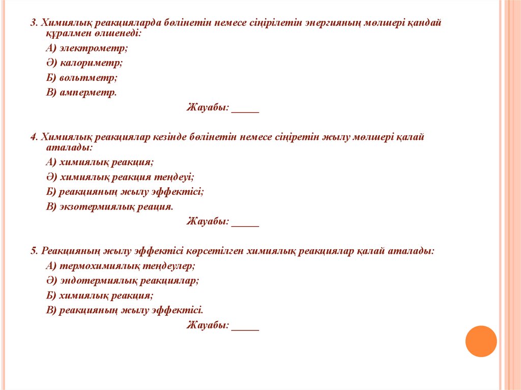 5. Реакцияның жылу эффектісі көрсетілген химиялық реакциялар қалай аталады: