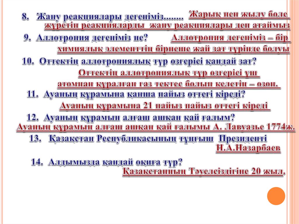САБАҚТЫҢ ТАҚЫРЫБЫ:ХИМИЯЛЫҚ РЕАКЦИЯЛАРДЫҢ