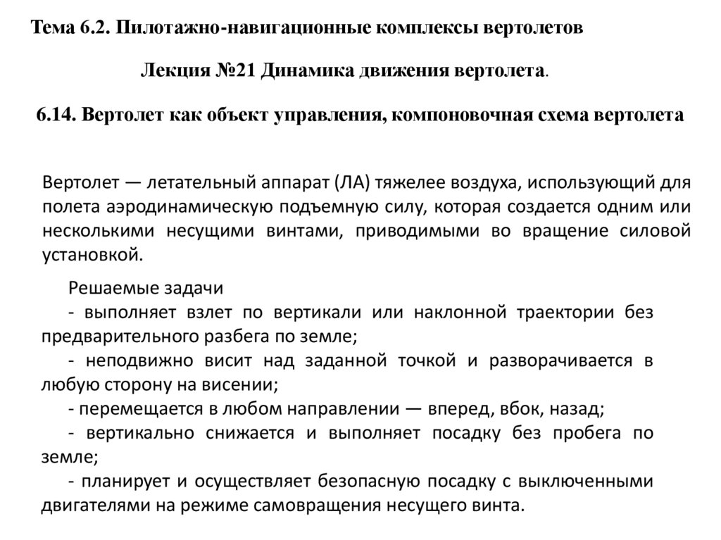 Тема 6.2. Пилотажно-навигационные комплексы вертолетовЛекция №21 Динамика движения вертолета.