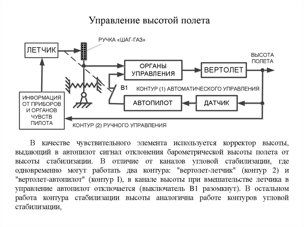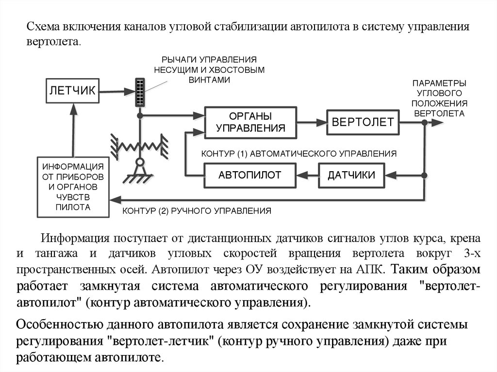 работает замкнутая система автоматического регулирования "вертолетавтопилот" (контур автоматического управления).