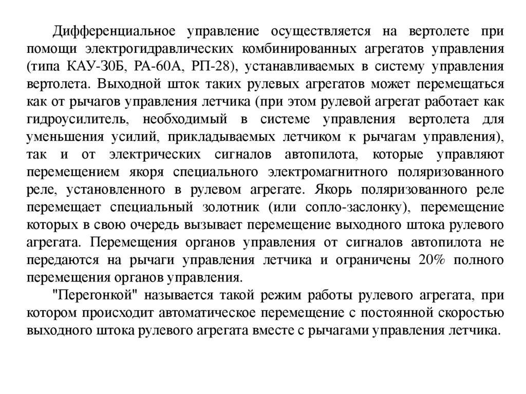 Дифференциальное управление осуществляется на вертолете припомощи электрогидравлических комбинированных агрегатов управления