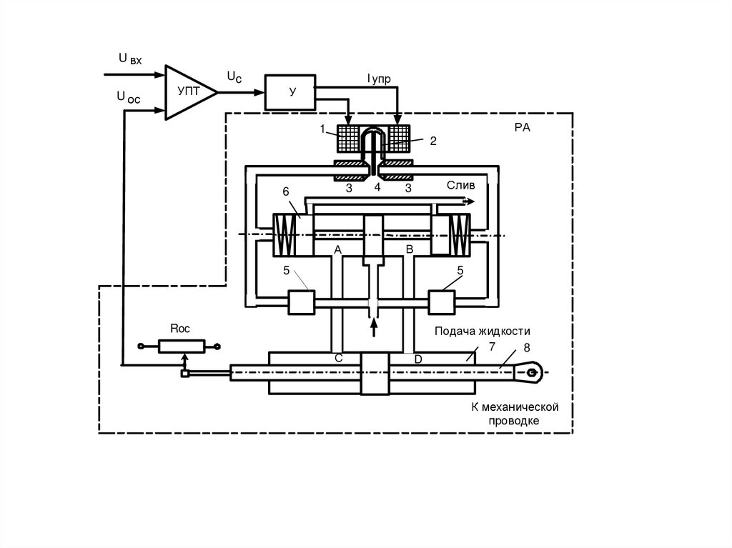 перемещает специальный золотник (или сопло-заслонку), перемещение