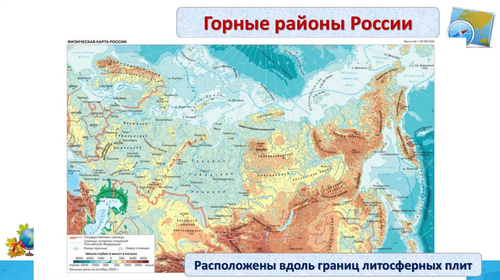 Горные районы РоссииРасположены вдоль границ литосферных плит