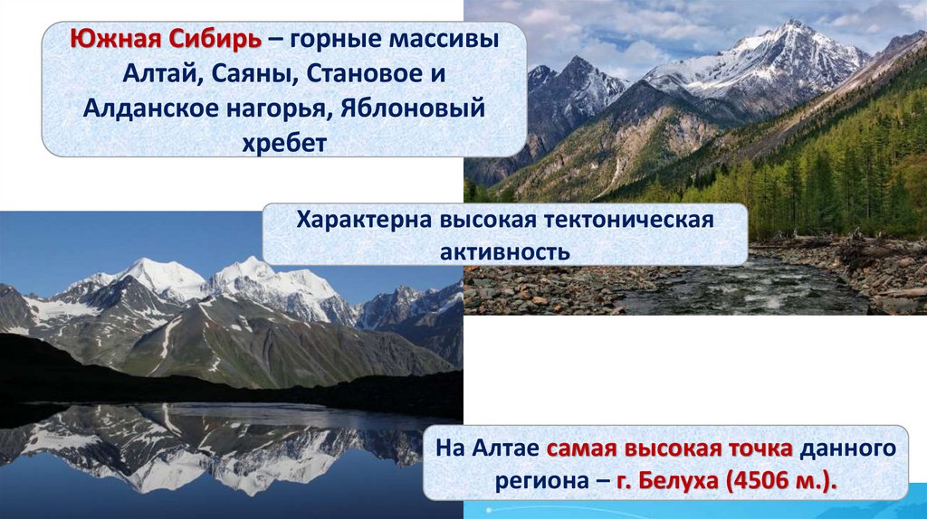 Южная Сибирь – горные массивыАлтай, Саяны, Становое и