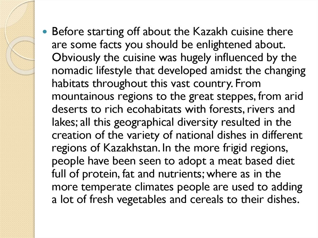 Before starting off about the Kazakh cuisine thereare some facts you should be enlightened about.