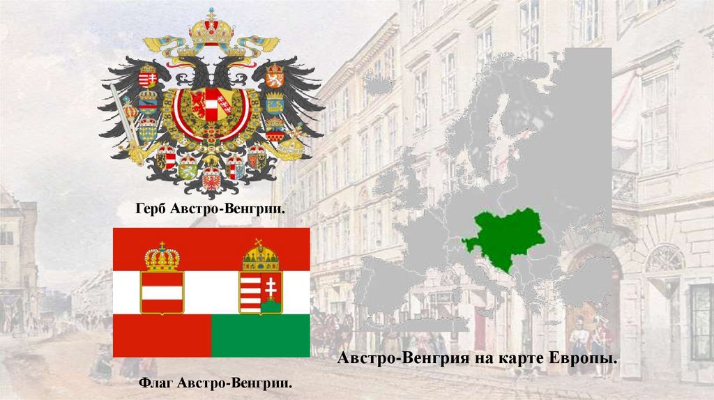 Герб Австро-Венгрии.Австро-Венгрия на карте Европы.
