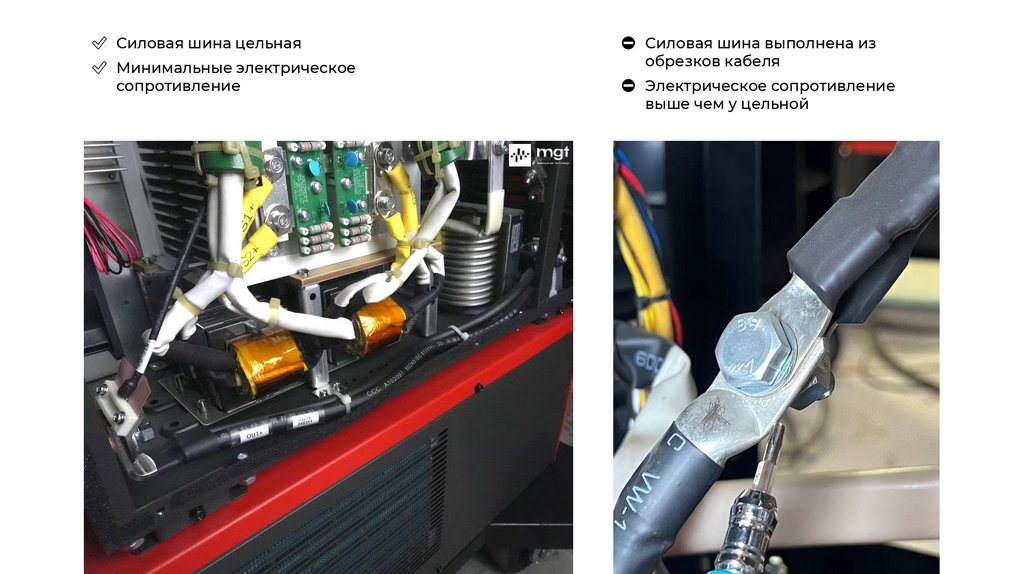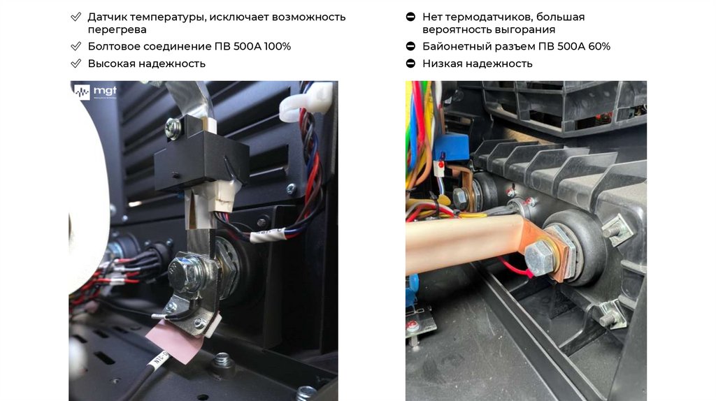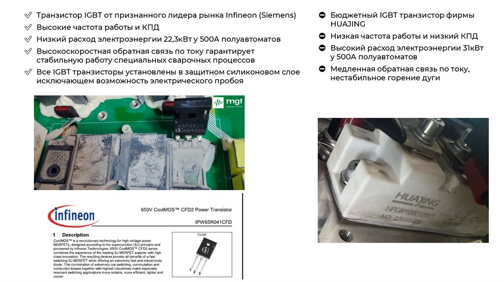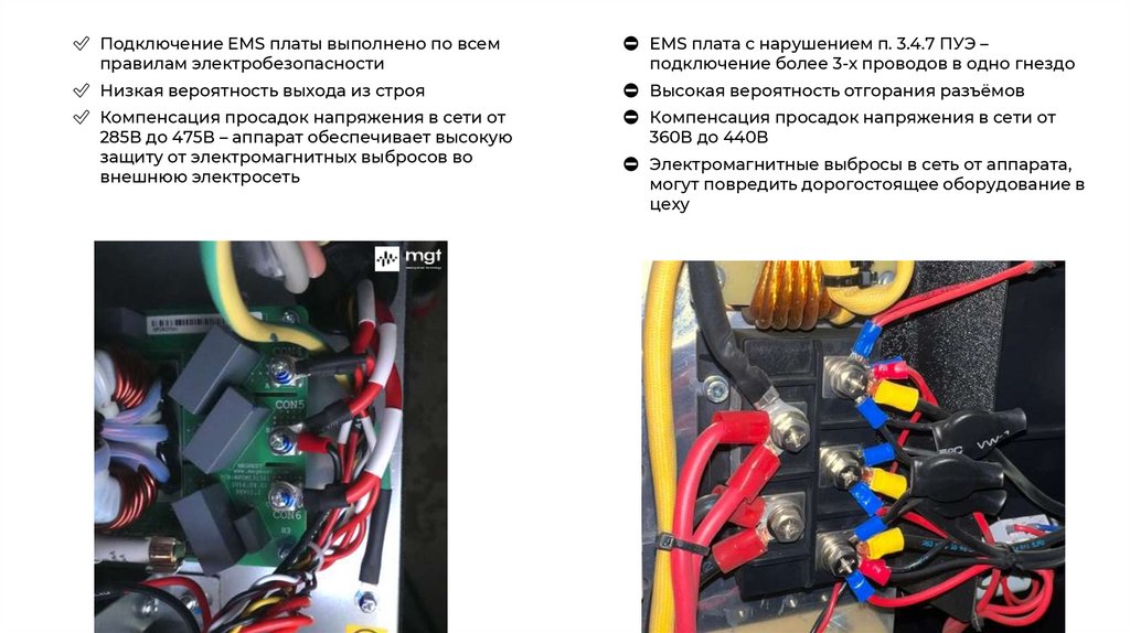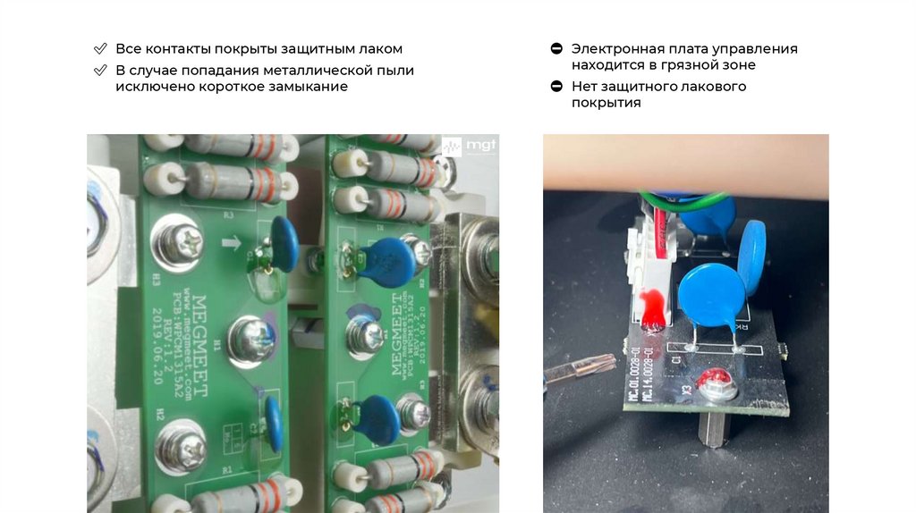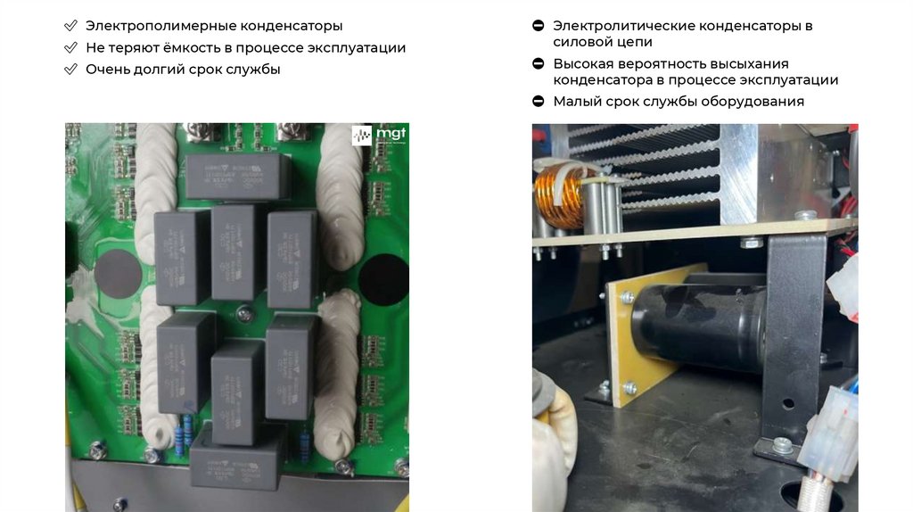 • Надежно? - Вся электроника оборудования mgt производится на передовых высокоточных автоматических линиях SMDмонтажа без участия людей. Все платы изготовлены с учетом высочайших требований надежности из качественных