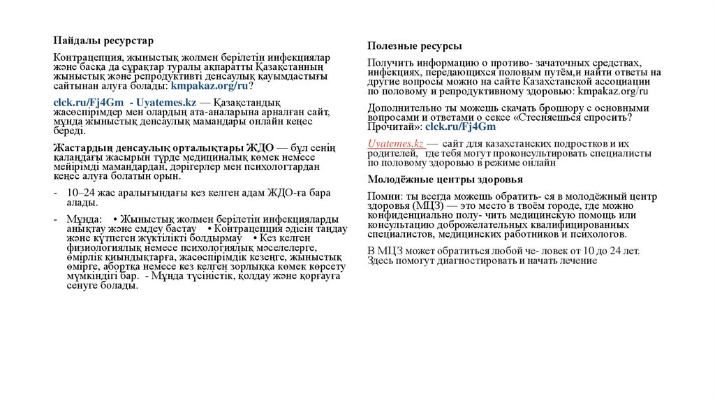Пайдалы ресурстарКонтрацепция, жыныстық жолмен берілетін инфекциялар